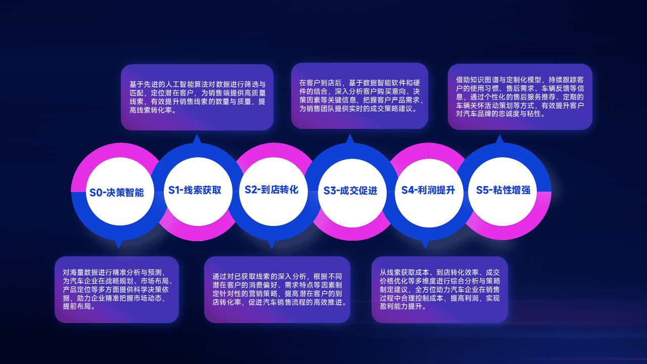 通过拓宽潜在客户来源、、优化线索分配并提高到店转化率,,,,以增强销售效率。。。。同时,,利用线索数据不断优化分析模型,,,,有效提升转化率,,扩大营销影响力。。。